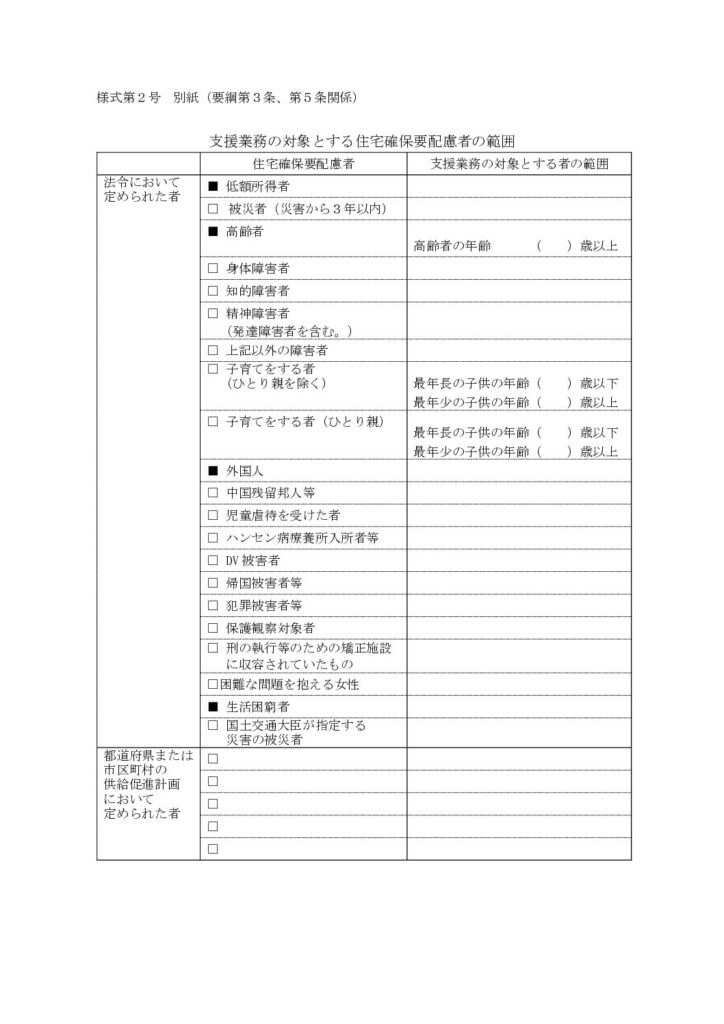 支援業務の対象とする住宅確保要配慮者の範囲
