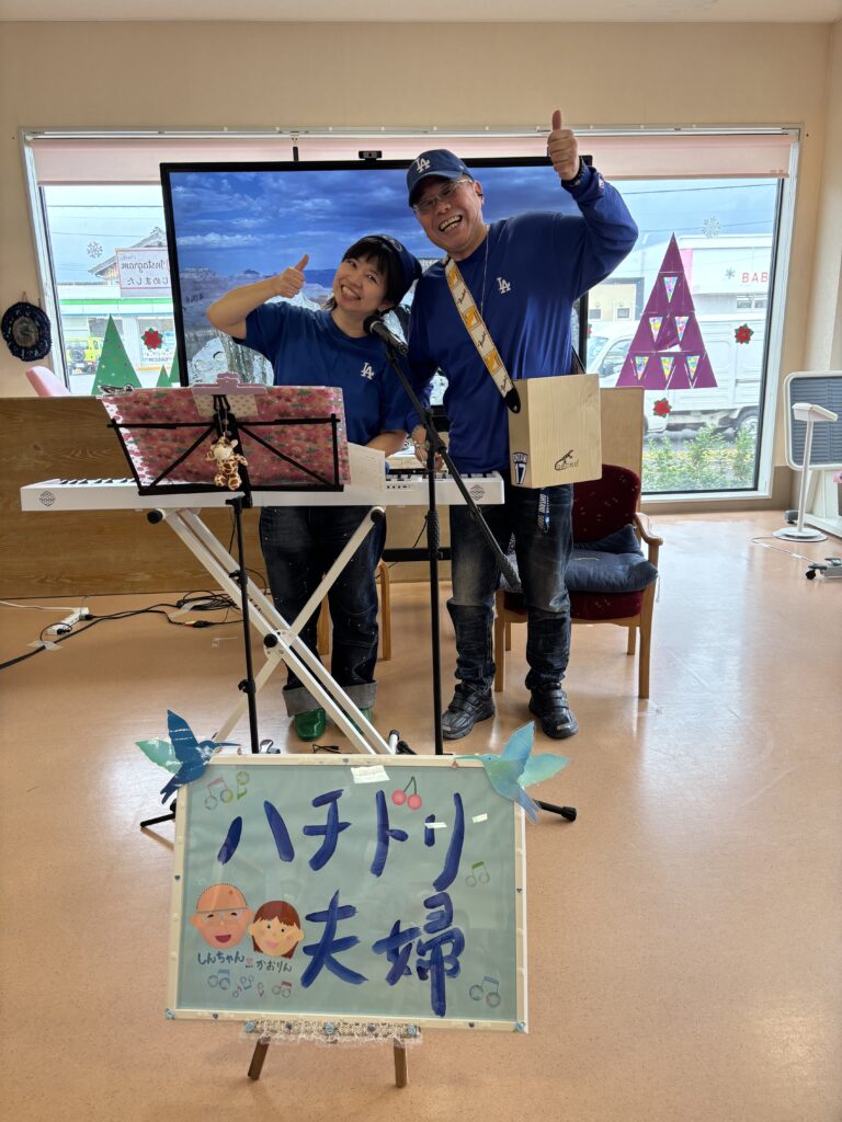 午前中は「利用者様方のカラオケ大会」と「ハチドリ夫婦様の演奏会」を行いました😄