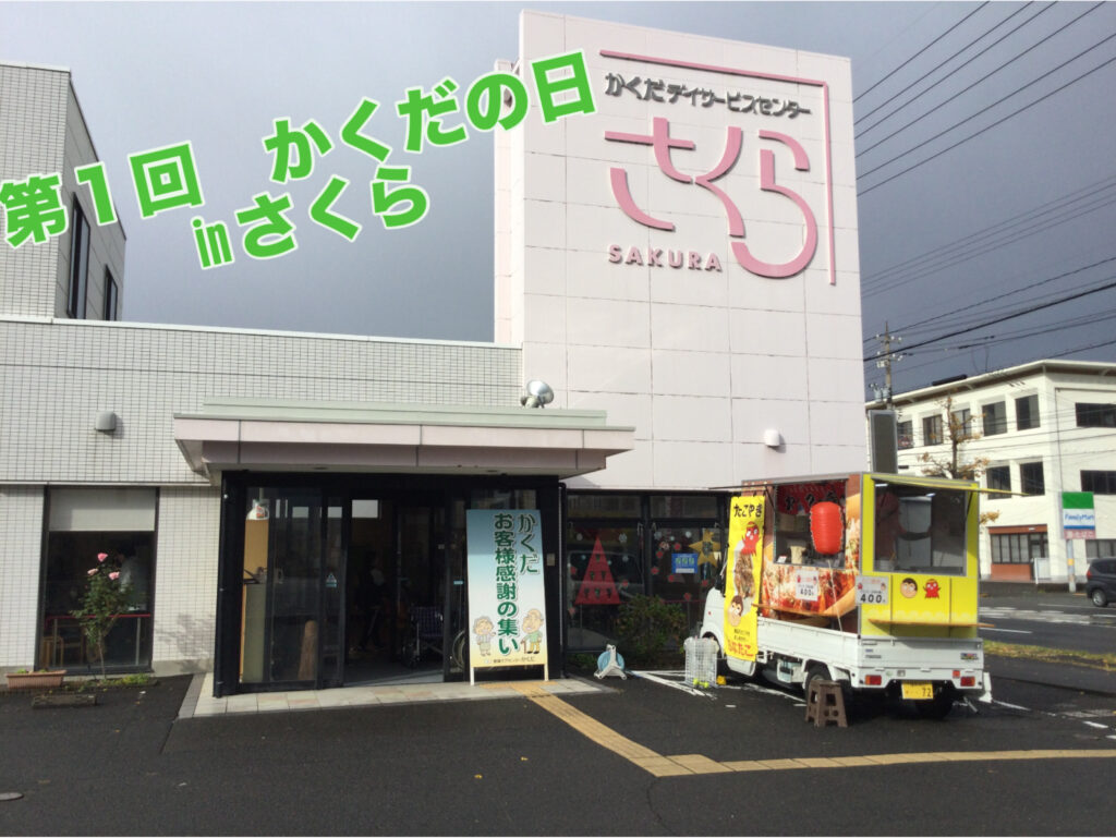 さて、話は変わりますが19日に「デイサービスセンターさくら」で第一回「かくだの日」というイベントを開催しました。前日が荒れ模様の天気で心配でしたが、当日は肌寒いものの落ち着いた天気で行うことができました。
