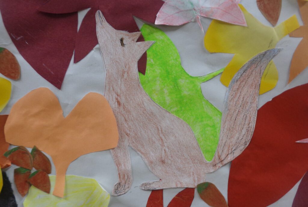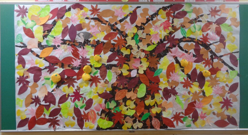 イチョウや紅葉の中に、果物や動物が点在しております。