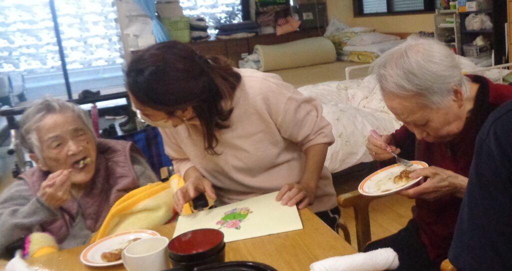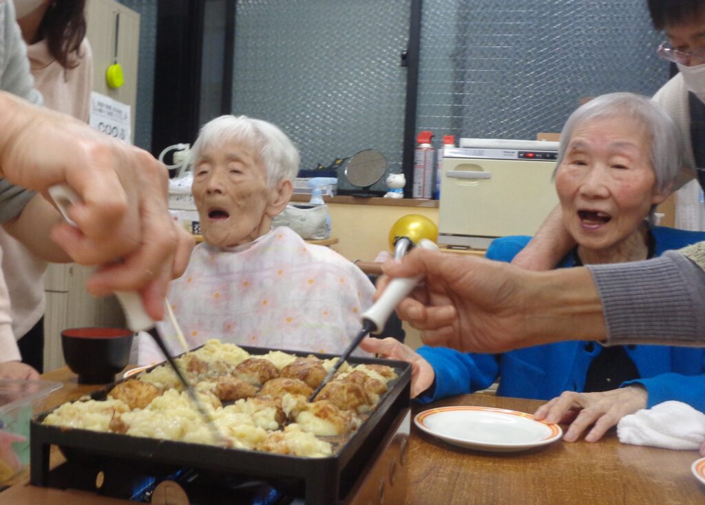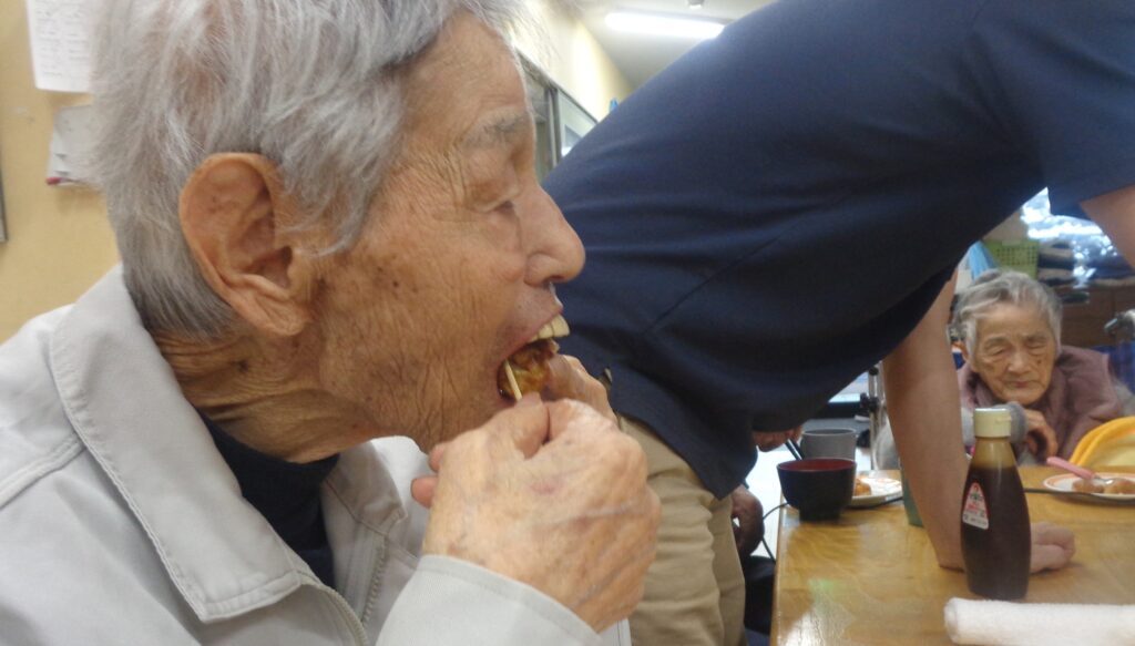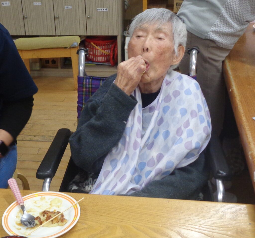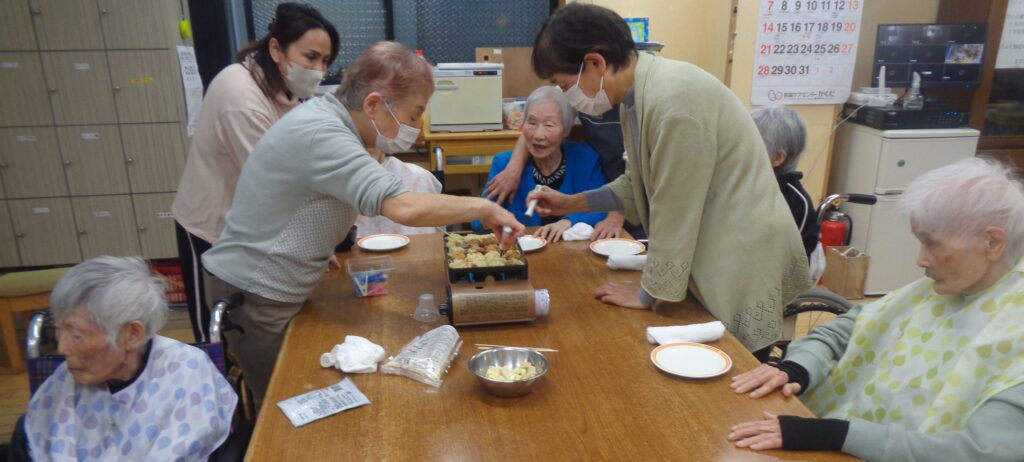 焼きは基本職員で行いましたが、男性利用者T様と女性利用者様K様が手伝ってくださいました☺
