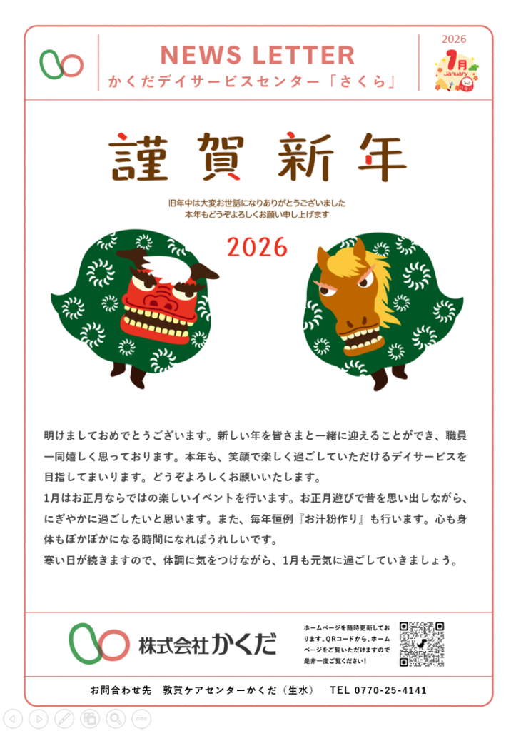 今日は、さくらニュースレター2026年1月を掲載します。