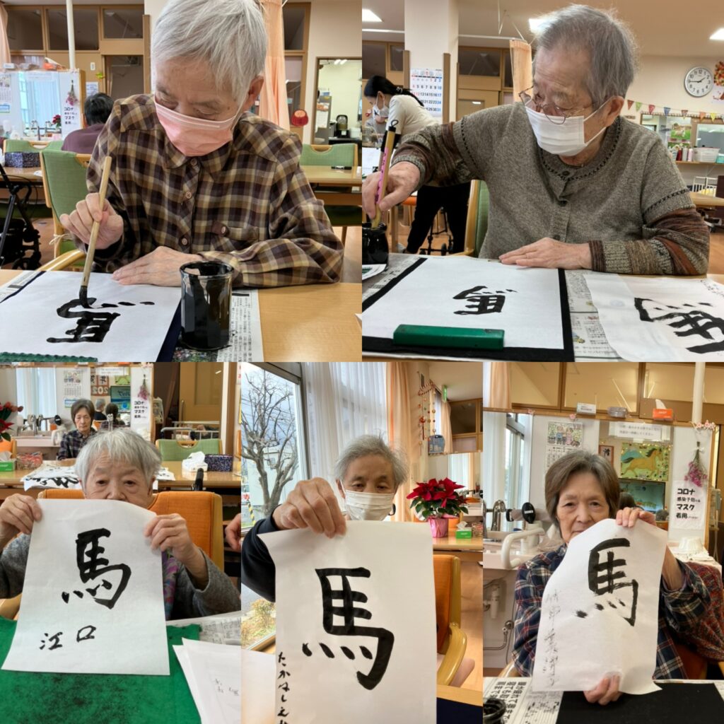 1/14 書初め🖌をしました!(^^)!今年の干支「馬」をかきました✨