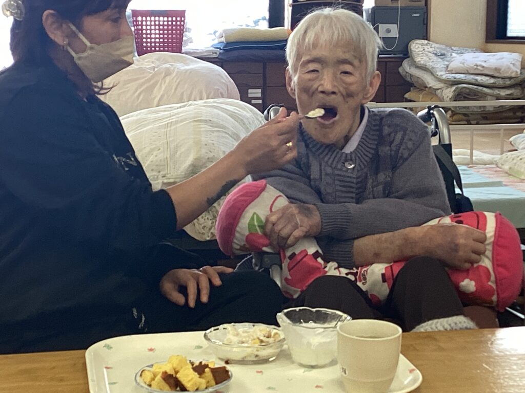 豆まきの後には、U様の誕生日プレゼントのカステラを皆さんでいただきました。😋