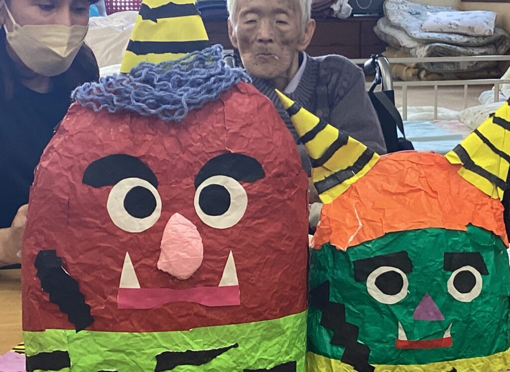 と願いを込めて、鬼に向かって「鬼は外~」とやっつけました。